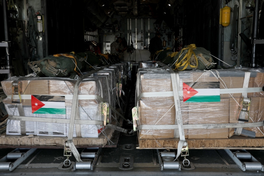 الوقائع الإخبارية : نفذت القوات المسلحة الأردنية، اليوم الاثنين، عملية إنزال جوي إلى قطاع غزة، شاركت في العملية بالإضافة إلى طائرات سلاح الجو الملكي الأردني، طائرات من كل من جمهورية ألمانيا الاتحادية ودولة الإمارات العربية المتحدة ومملكة بلجيكا وجمهورية فرنسا وجمهورية إيطاليا ومملكة هولندا وجمهورية سنغافورا وجمهورية إندونيسيا، حيث تم إسقاط نحو (100) طناً من المواد الغذائية والإغاثية داخل القطاع.