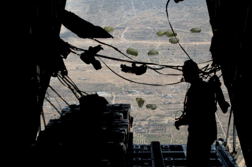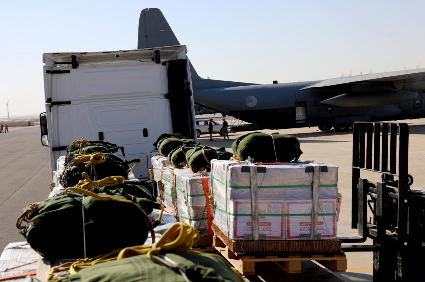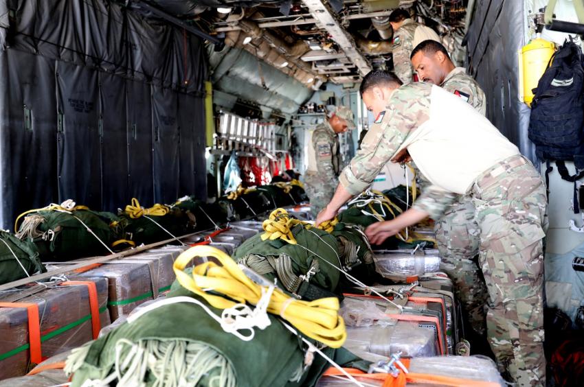 الوقائع الإخبارية : - نفذت القوات المسلحة الأردنية، اليوم الاربعاء، عملية إنزال جوي إلى قطاع غزة، شاركت في العملية بالإضافة إلى طائرات سلاح الجو الملكي الأردني، طائرات من كل من جمهورية ألمانيا الاتحادية ودولة الإمارات العربية المتحدة وجمهورية فرنسا ومملكة هولندا وجمهورية سنغافورا وجمهورية اندونسيا، حيث تم إسقاط نحو (62) طناً من المواد الغذائية والإغاثية داخل القطاع.