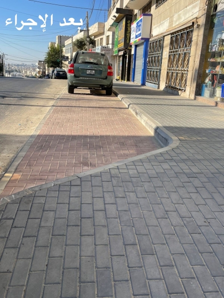 كما تم ازالة التشوهات البصرية ، وتحديد مواد بألوان خاصة لمواقف السيارات لغايات تميزها عن ارصفة المشاة.