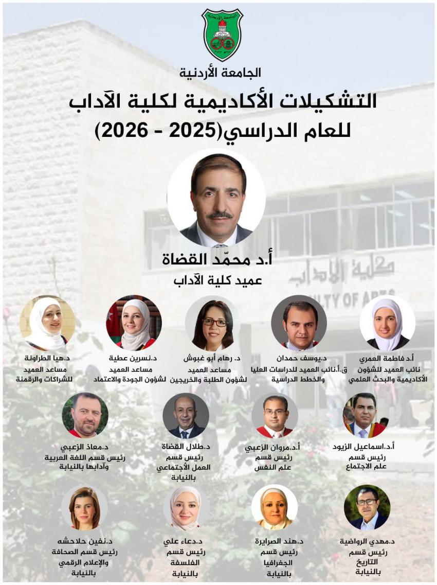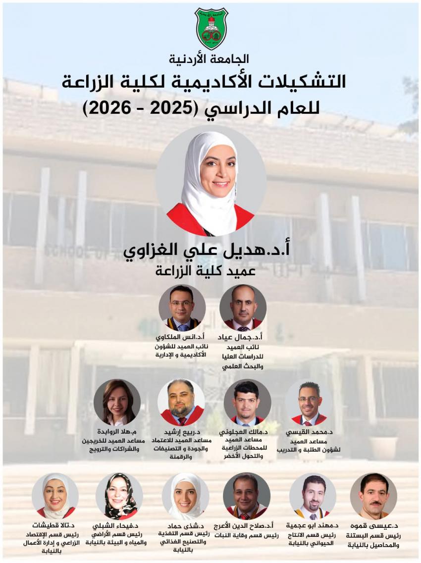 وشملت التشكيلات الإدارية نواب عمداء الكليات ومساعديهم ورؤساء الأقسام للعام الجامعيّ 2025/2026، وذلك على النحو الآتي: