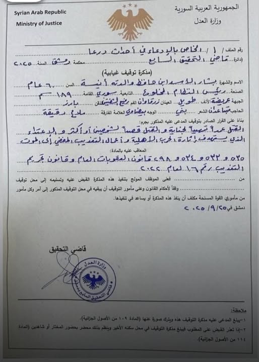 مذكرة توقيف غيابية بحق بشار الأسد