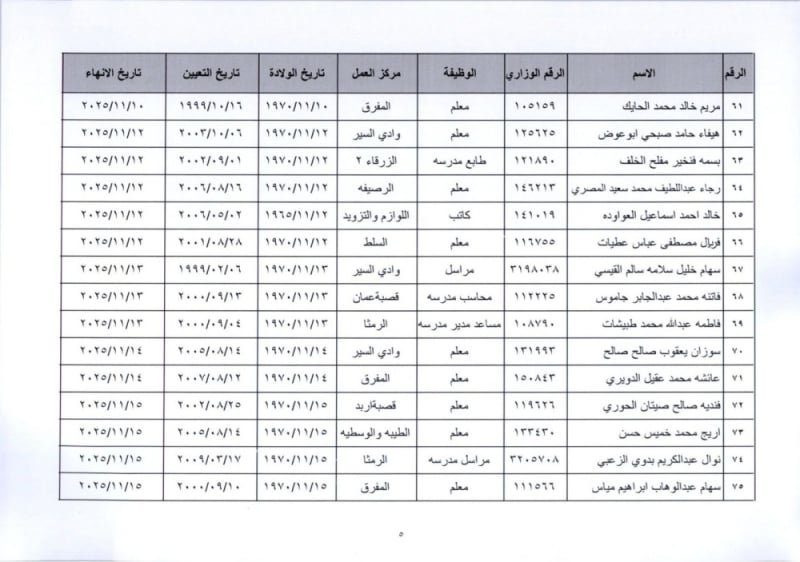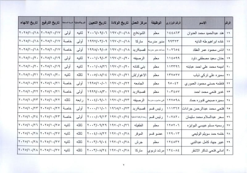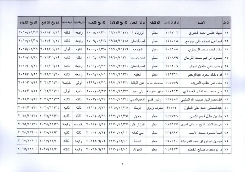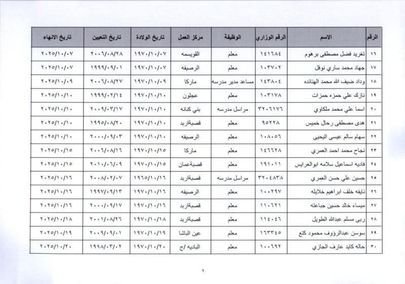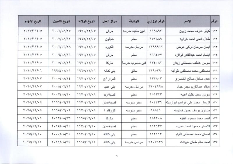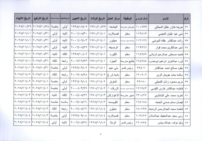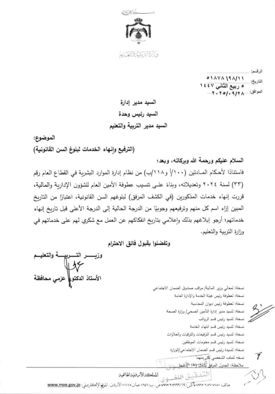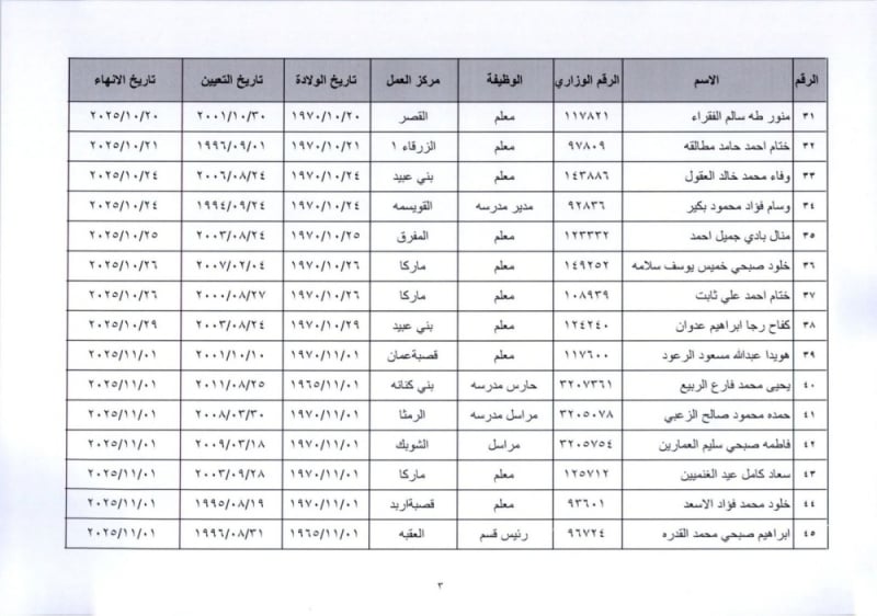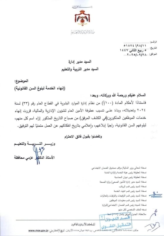 بالأسماء .. التربية تُحيل موظفين إلى التقاعد لبلوغهم السن القانونية