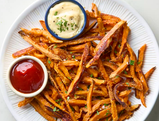 يوضع فى طبق التقديم عيش شامى مكعبات مقلى , حمص
