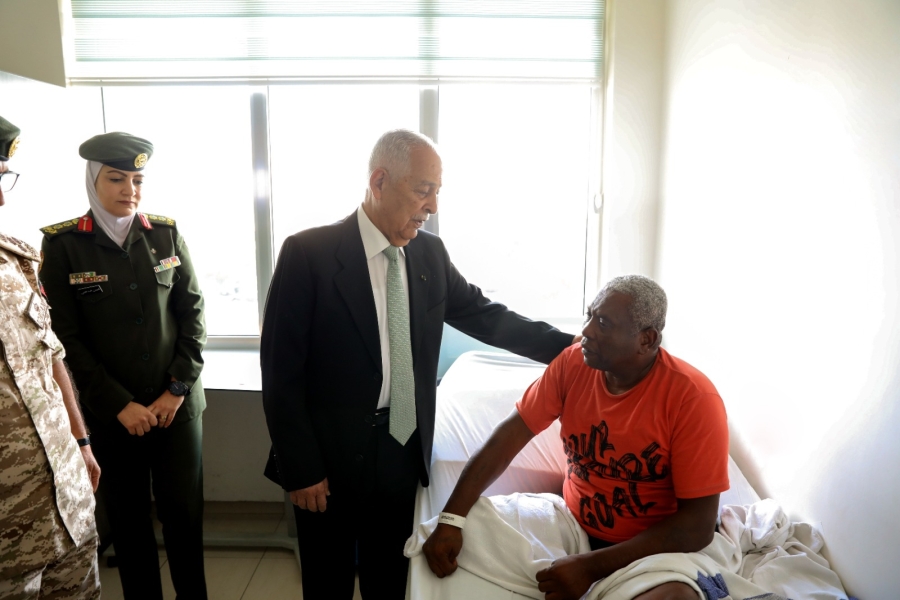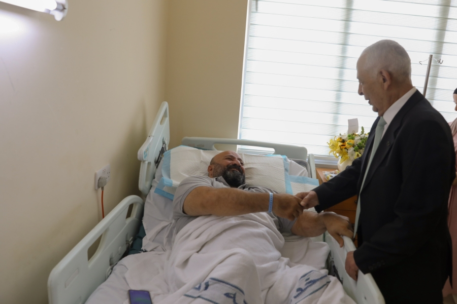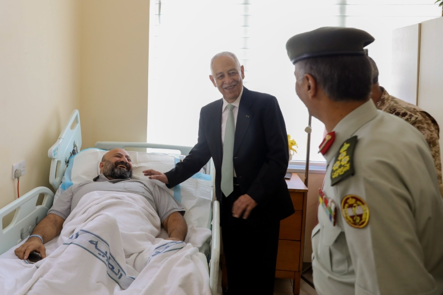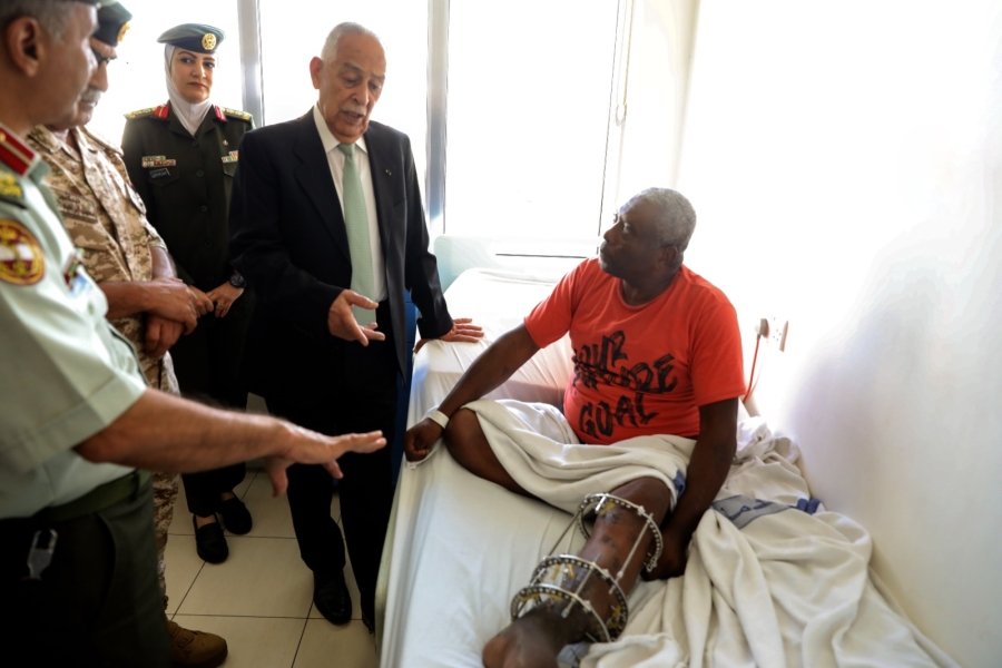 الوقائع: تنفيذاً للتوجيهات الملكية السامية، اطمأن رئيس الديوان الملكي الهاشمي يوسف حسن العيسوي، اليوم الاثنين، على الحالة الصحية للبطل البارالمبي العالمي الكابتن معتز الجنيدي، بطل العالم في رفع الاثقال، الذي يرقد على سرير الشفاء في المدينة الطبية إثر تعرضه لكسر في مفصل الحوض خلال معسكر تدريبي في مملكة البحرين، ضمن استعداداته للمشاركة في بطولة العالم لرفع الأثقال.