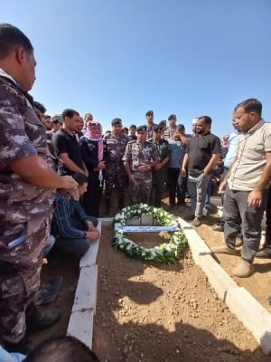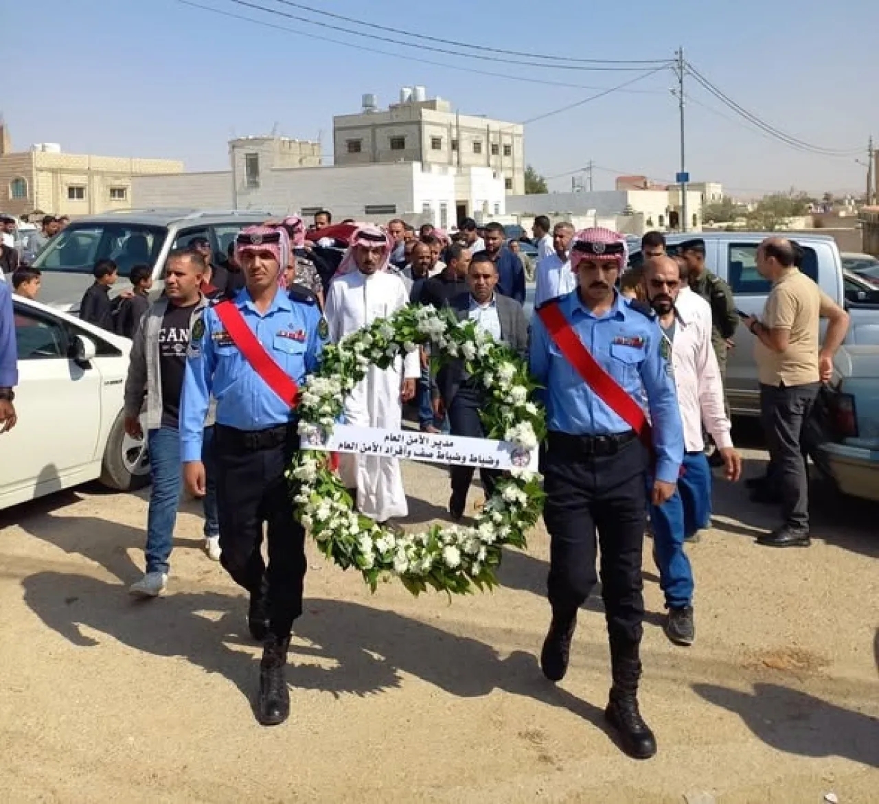وقام مندوب مدير الامن العام العقيد ركن احمد ياسين المعايطة بنقل تعازي مدير الامن العام ومنتسبي الجهاز ، ووضع إكليل من الزهور على ضريح الفقيد رحمه الله واسكنه فسيح جناته .