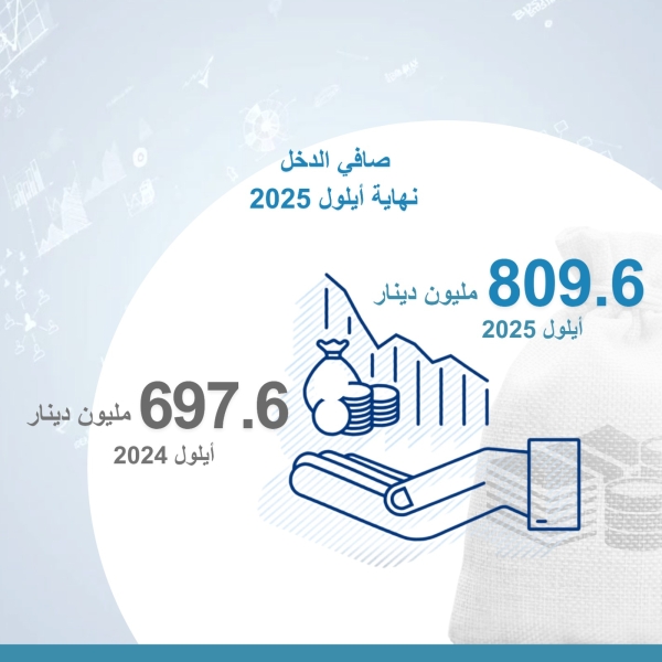 This growth was driven by an increase in total income, which advanced to JD 1.6 billion compared with JD 664.5 million for the same period last year — a 133.5 percent increase — along with the JD 164 million surplus transferred from the Social Security Corporation.