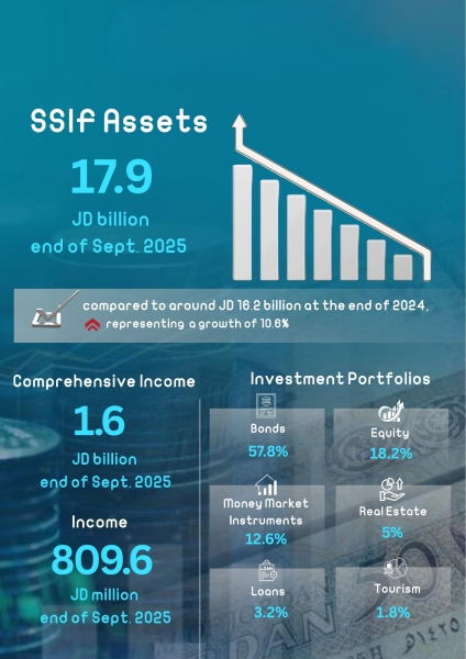 SSIF’s assets grew by JD 1.7 billion to reach nearly JD 18 billion at the end of Q3 2025 Record total income of JD 1.6 billion emphasizes Fund’s strong performance