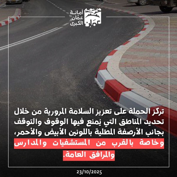 وتركز الحملة على تعزيز السلامة المرورية من خلال تحديد المناطق التي يُمنع فيها الوقوف والتوقف بجانب الأرصفة المطلية باللونين الأبيض والأحمر، وخاصة بالقرب من المستشفيات والمدارس والمرافق العامة، بما يسهم في تحسين انسيابية السير والحد من الازدحامات المرورية.