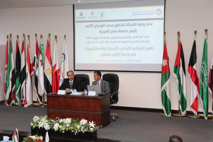 جامعة عمان العربية تنظم ندوة علمية بعنوان "الأمن الوطني الأردني: التحديات والاستراتيجيات في وسط إقليم مضطرب"