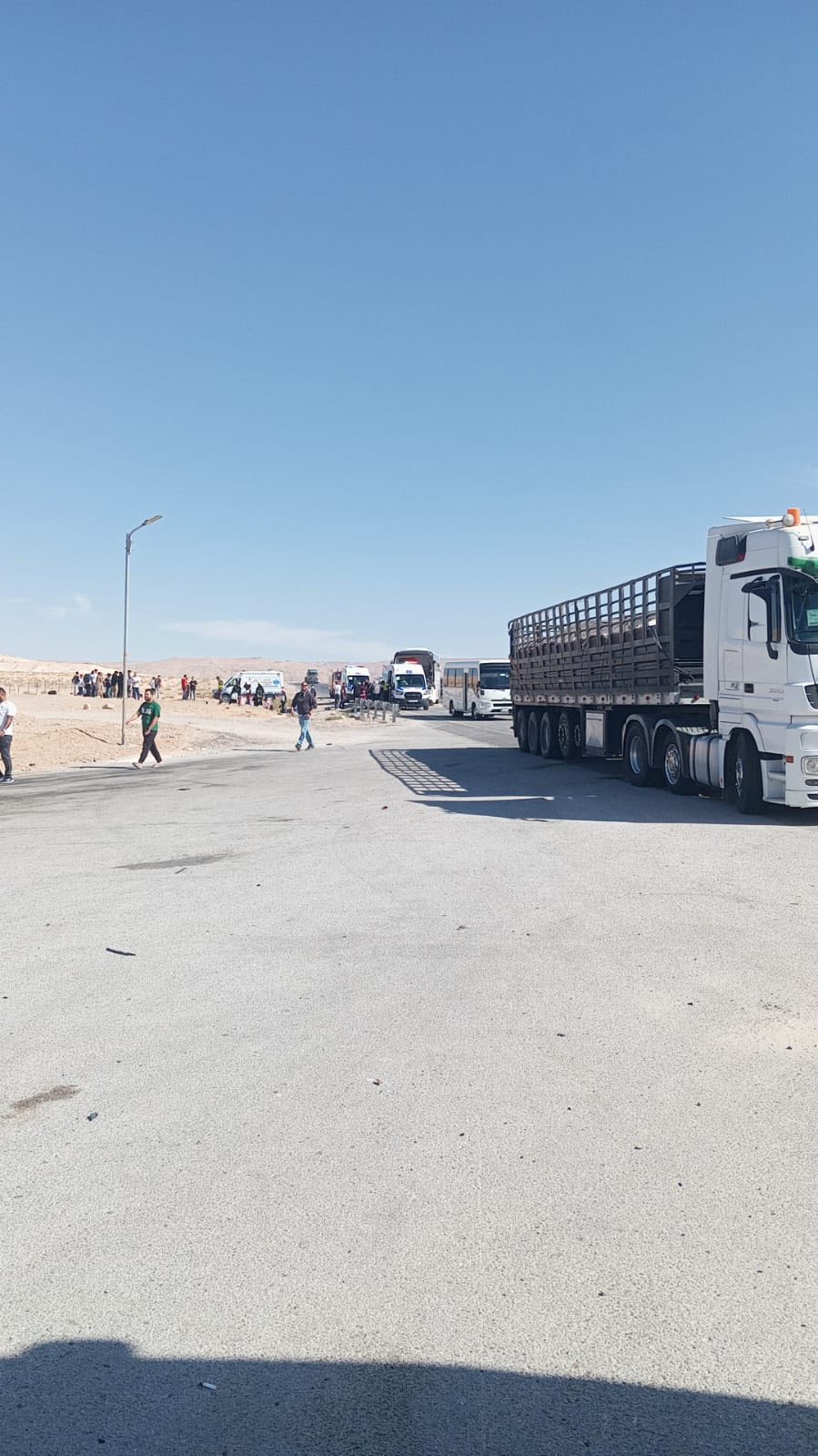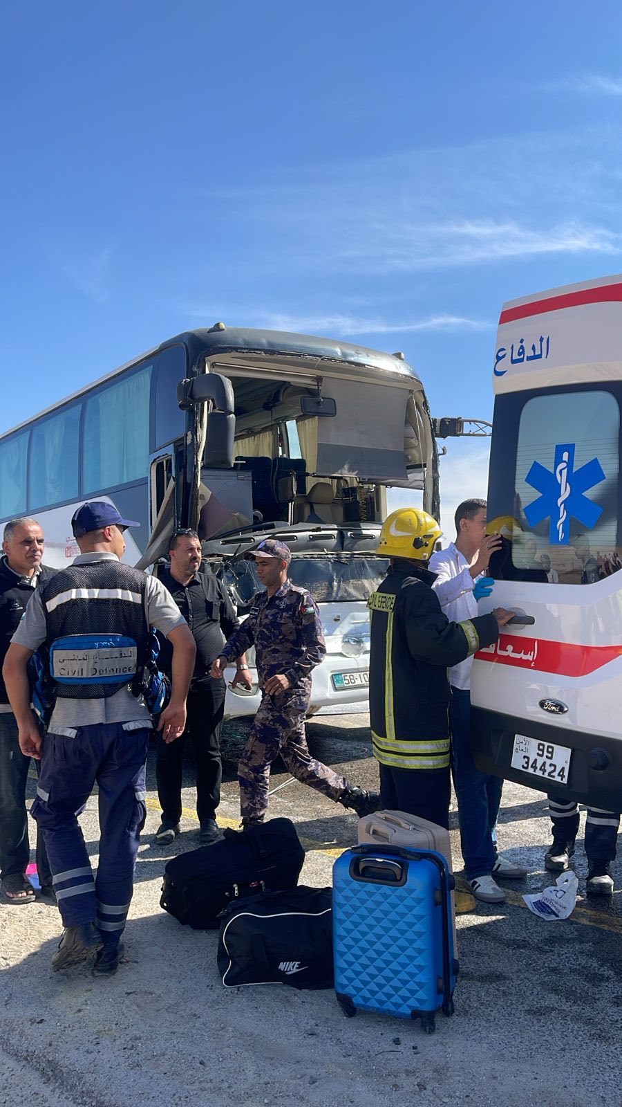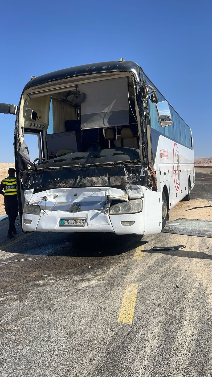 الوقائع الإخباري: صرح الناطق الإعلامي في مديرية الامن العام بان كوادر الانقاذ والاسعاف التابعة لمديرية دفاع مدني العقبة والشرطة تعاملت اليوم مع حادث تصادم وقع بين حافلة ركاب وتريلا بمنطقة القويرة في محافظة العقبة .