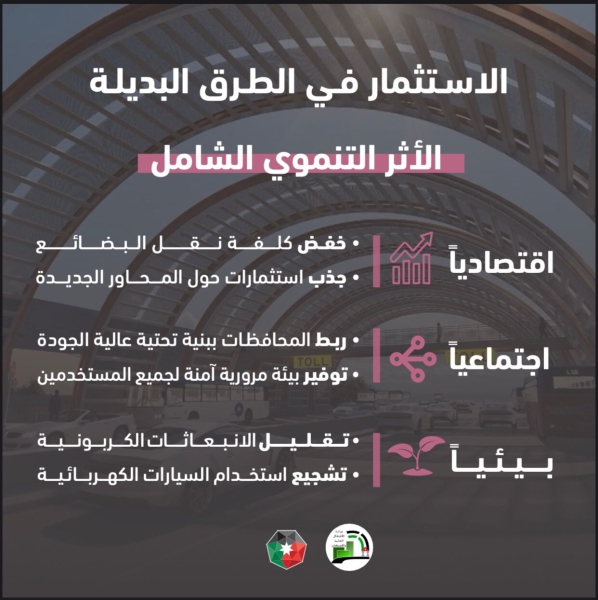 كما يُمثل تطبيق مفهوم الطرق البديلة مدفوعة الرسوم خطوة مهمة نحو تحفيز الاستثمارات في القطاع، وتوسيع شبكة الطرق الوطنية، وتحقيق نقلة تنموية في المناطق التي تمر بها هذه المشاريع.