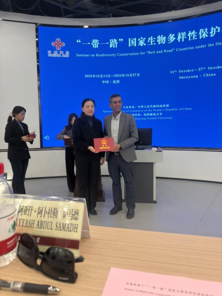 الوقائع الإخباري: " Seminar on Biodiversity Conservation for Belt and Road countries under the Dual Carbon Goals، الذي عقد في جمهورية الصين الشعبية خلال الفترة من 14 الى 27 تشرين الأول 2025 ، بتنظيم من وزارة التجارة في جمهورية الصين الشعبية و جامعة شنيانغ العادية (Shenyang Normal University