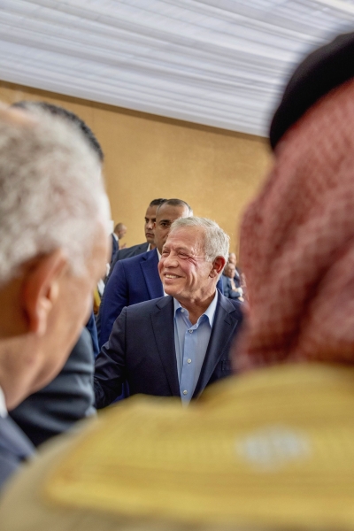 من جانبه، قال محافظ الكرك الدكتور قبلان الشريف في كلمته أمام جلالة الملك إن أبناء الوطن جنوده الأوفياء وسياجه المنيع، مؤكدا أن الأردن بقيادة جلالته يخطو بثبات نحو المستقبل، وأن الوطن لا يبنى بالشعارات بل بالعمل والإخلاص والانتماء الحقيقي.