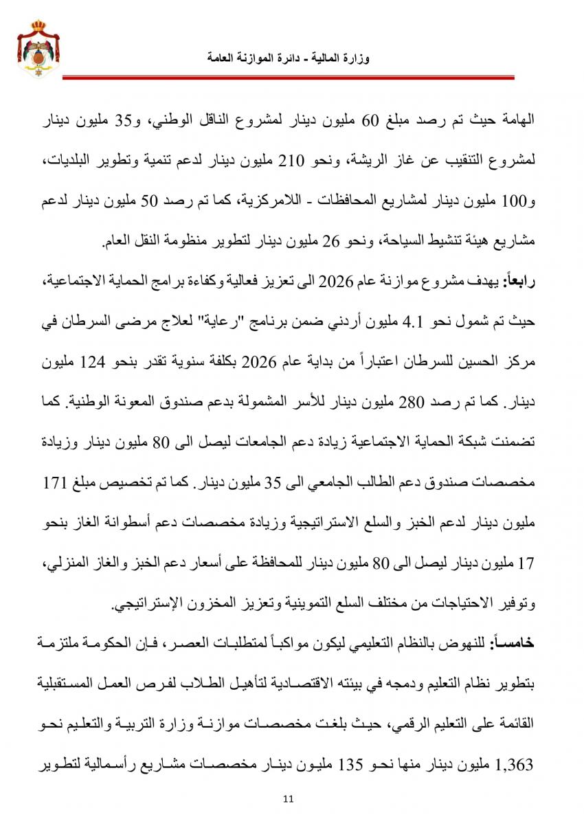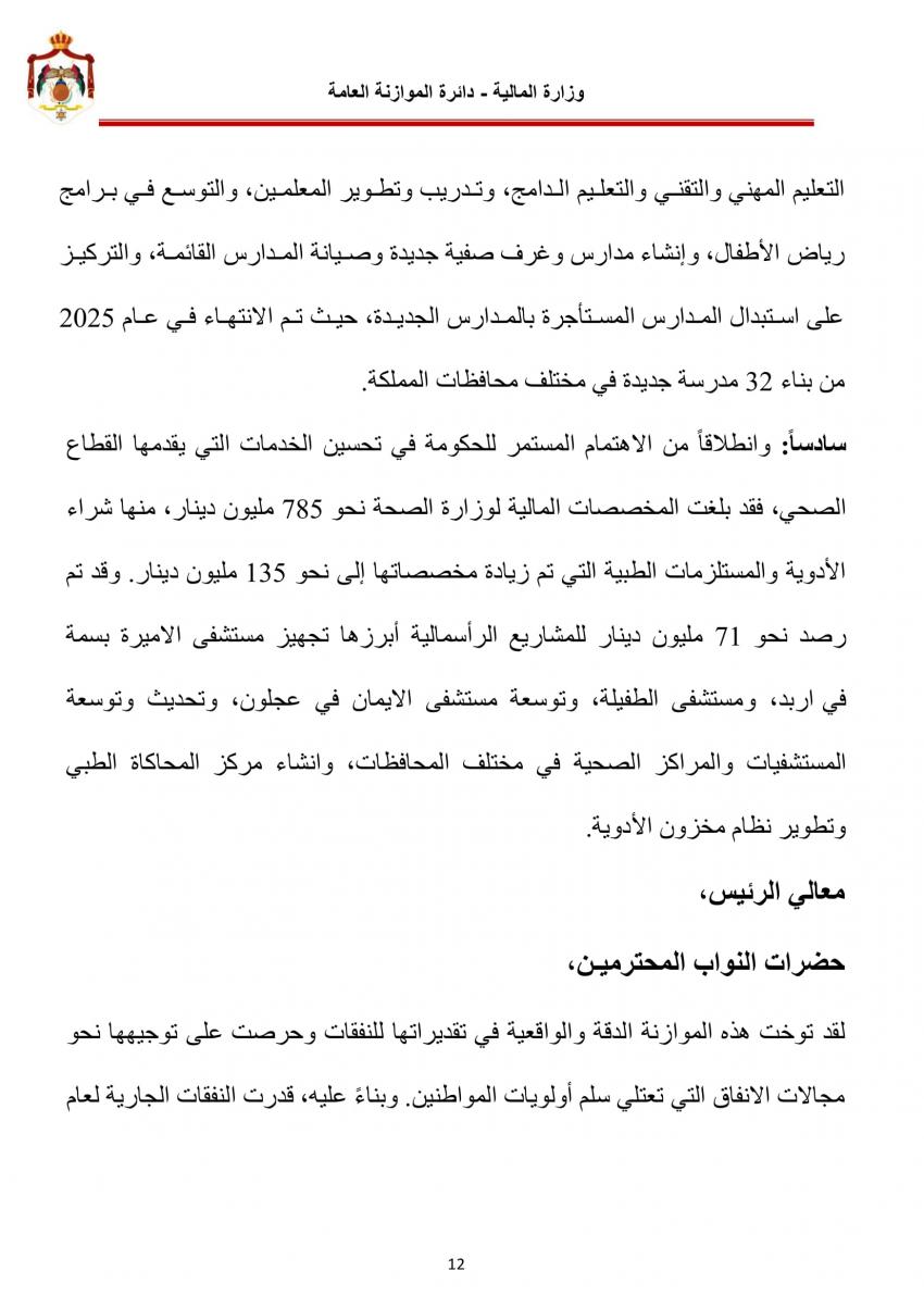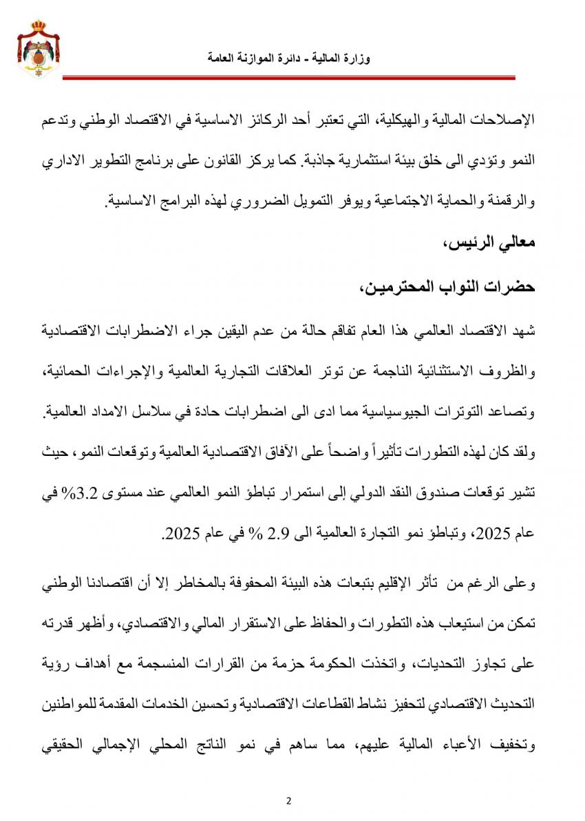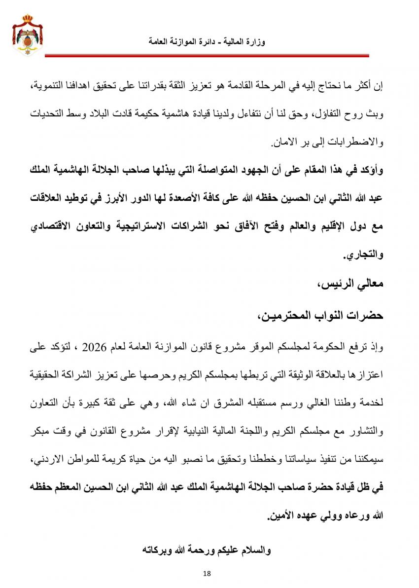 النص الكامل لخطاب الموازنة: الاقتصاد الأردني سيشهد مزيدا من النمو خلال عامين