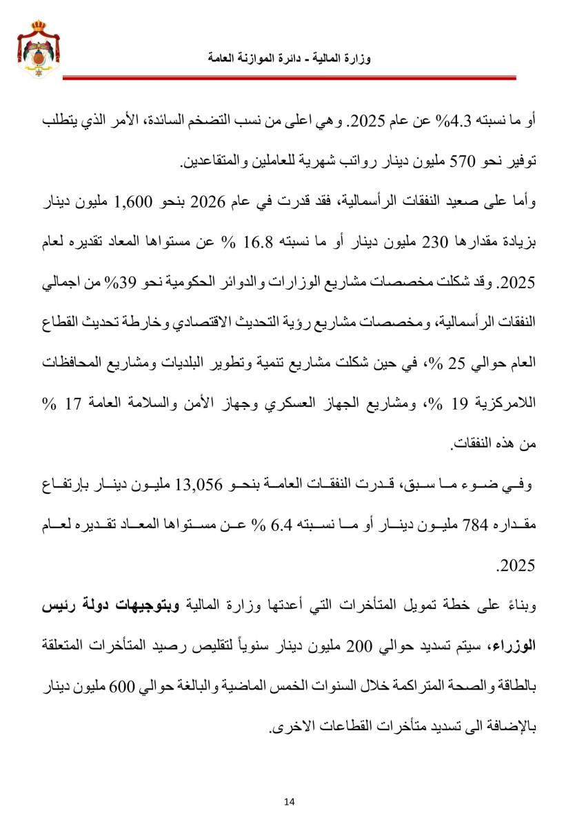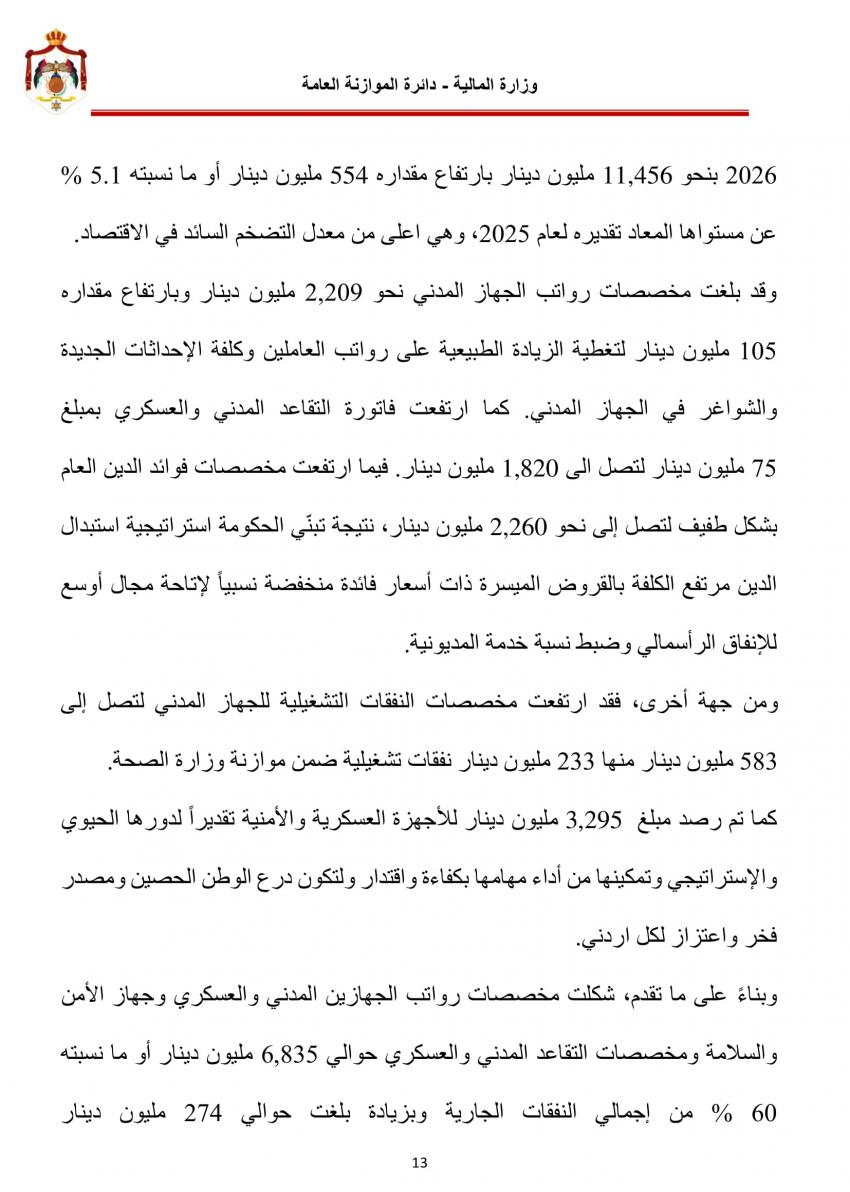 وأكد خطاب الموازنة أن الاقتصاد الاردني سيشهد مزيدا من النمو والاستقرار خلال العامين القادمين.