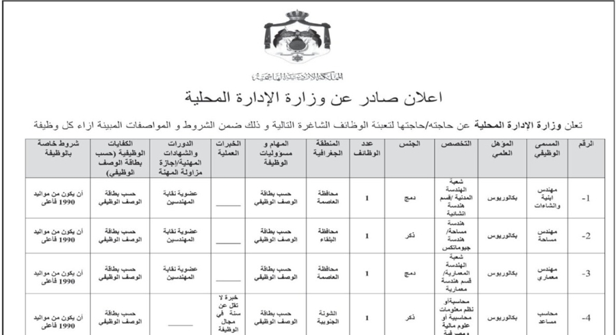 الوقائع الإخباري: أعلنت مؤسسات حكومية، اليوم الاثنين ، عن حاجتها لتعبئة وظائف شاغرة.