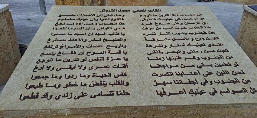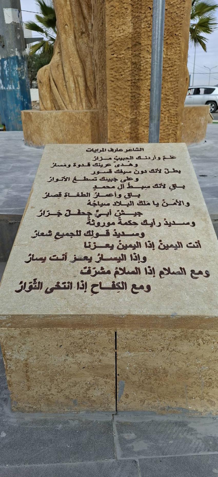 وأشار الفقير إلى أن النصب تناول عبر تشكيلاته الرمزية قصة الإنسان والمكان في الطفيلة، من خلال توظيف عناصر الفن والتراث، واستحضار نماذج من الموروث الشعبي والبيئي والأدبي، مثل قصائد الشعر الوطني وأسماء رمزية من أبناء المحافظة الذين أسهموا في الحياة الثقافية والفكرية.