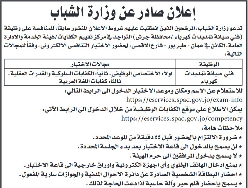 دعوة مرشحين لامتحان تنافسي في وزارة الشباب