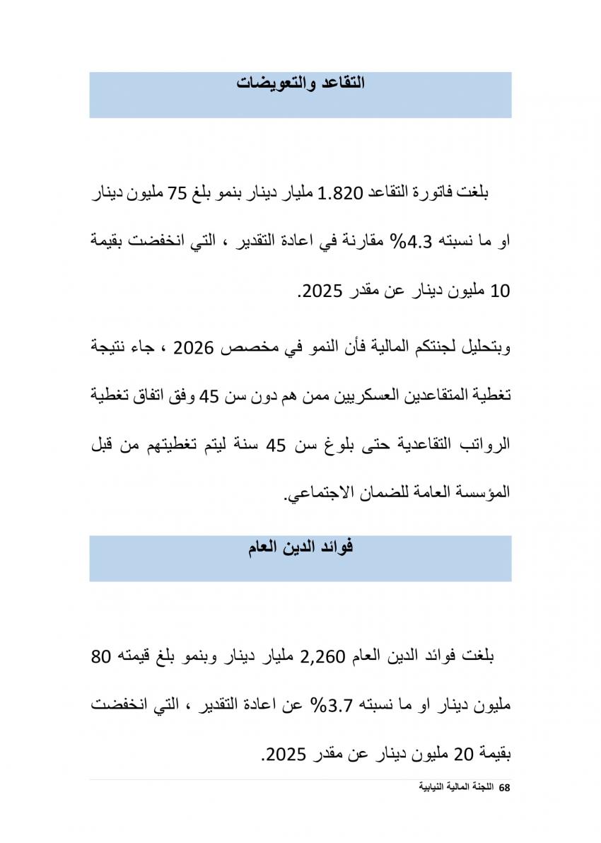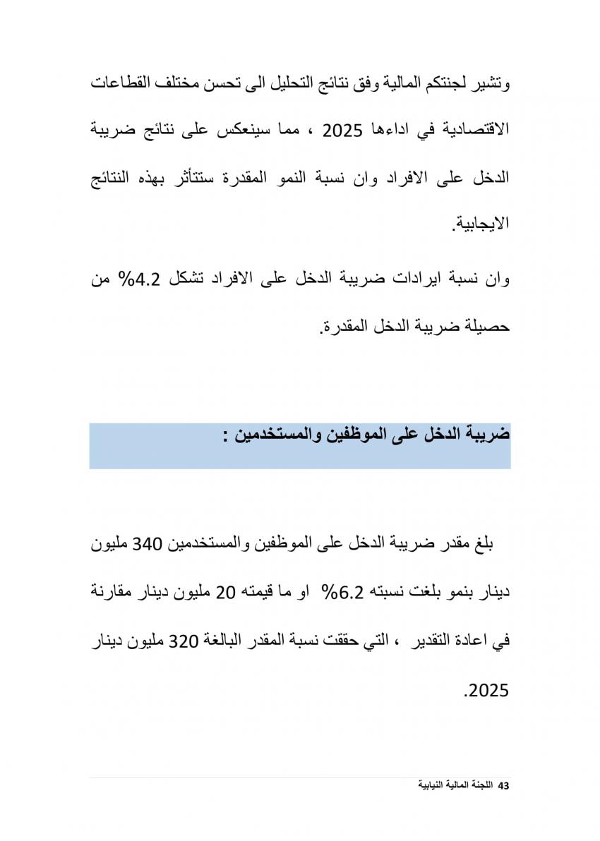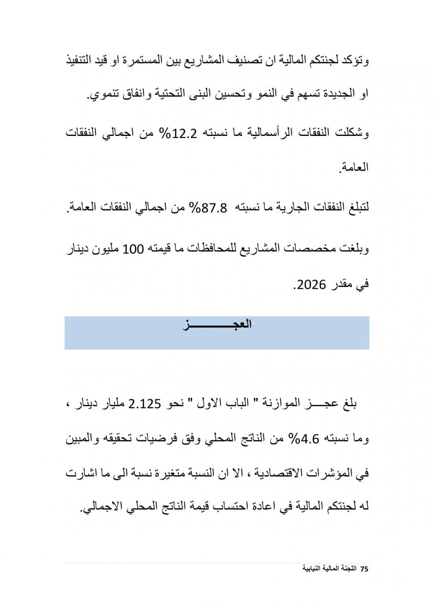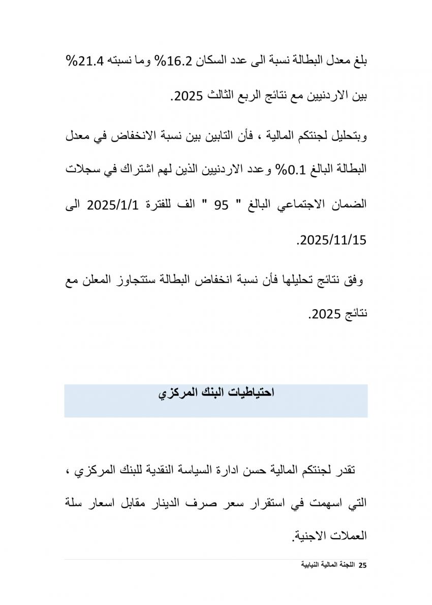 الوقائع الإخباري:- تلا مقرر اللجنة المالية في مجلس النواب النائب محمد البستنجي خلال جلسة اليوم الاثنين، نص قرار اللجنة بشأن مشروع قانون الموازنة العامة لسنة 2026، تمهيدا للشروع بمناقشة القانون تحت القبة.