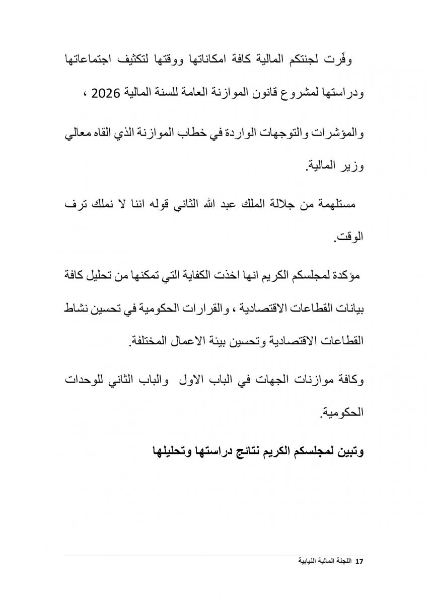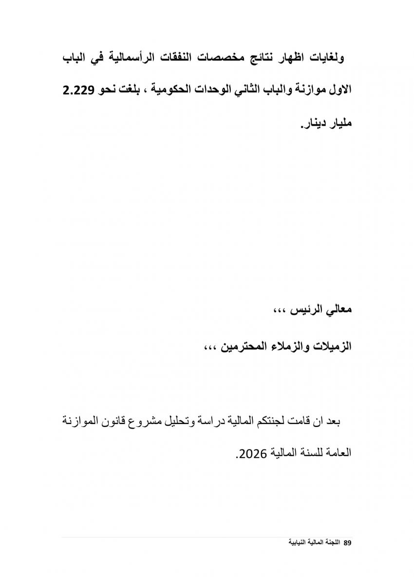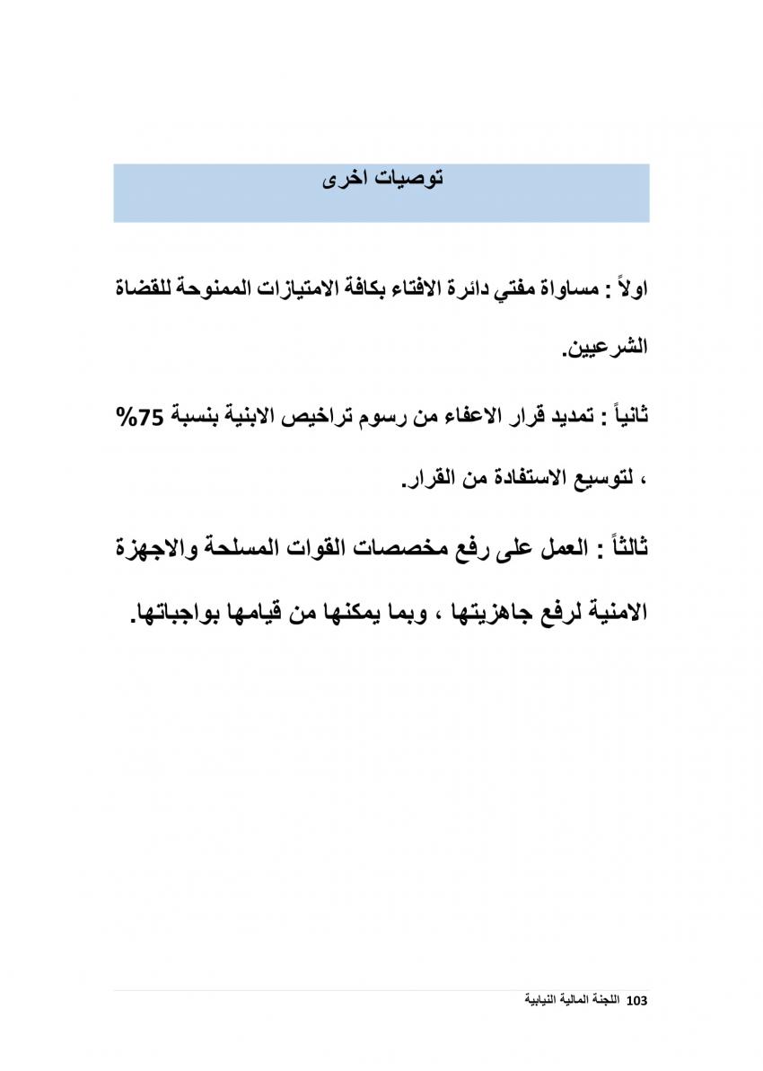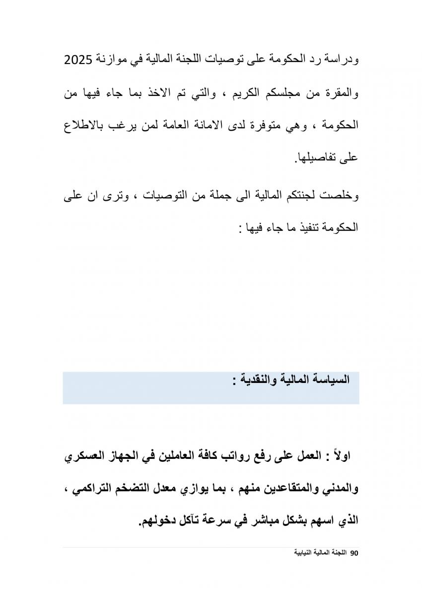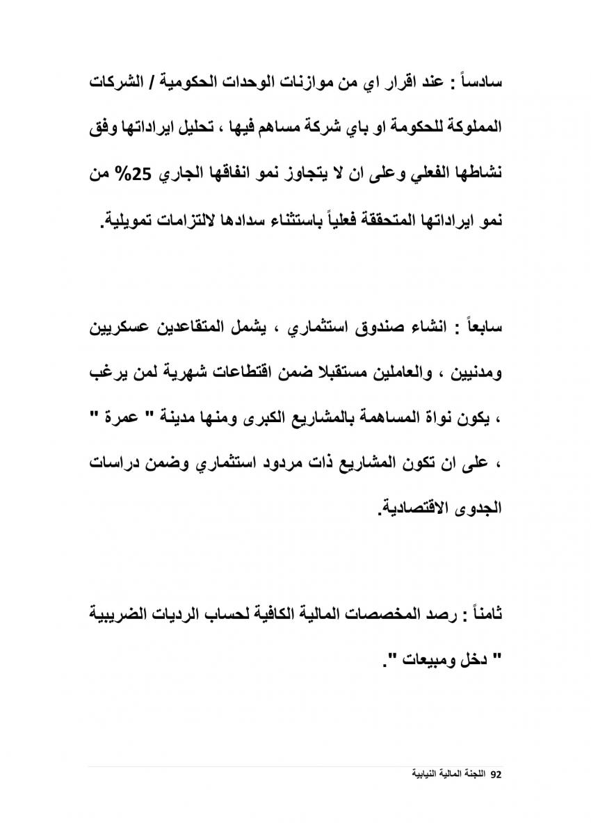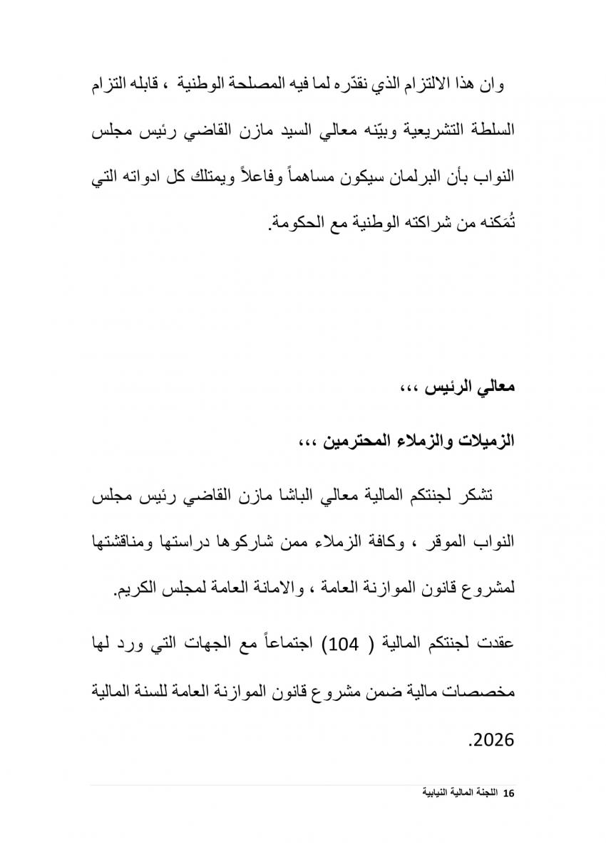 وتاليا نص قرار اللجنة بشأن مشروع قانون الموازنة: