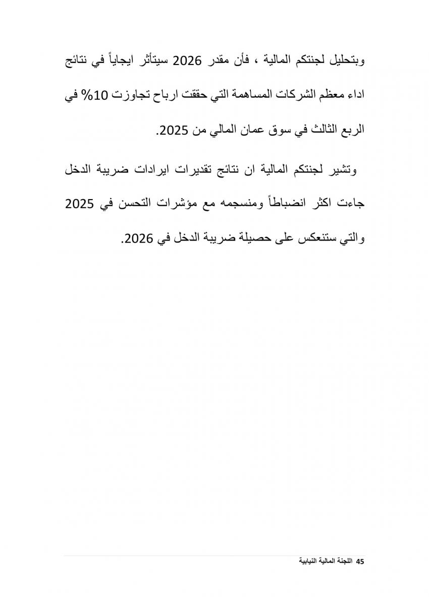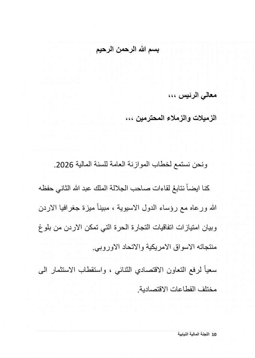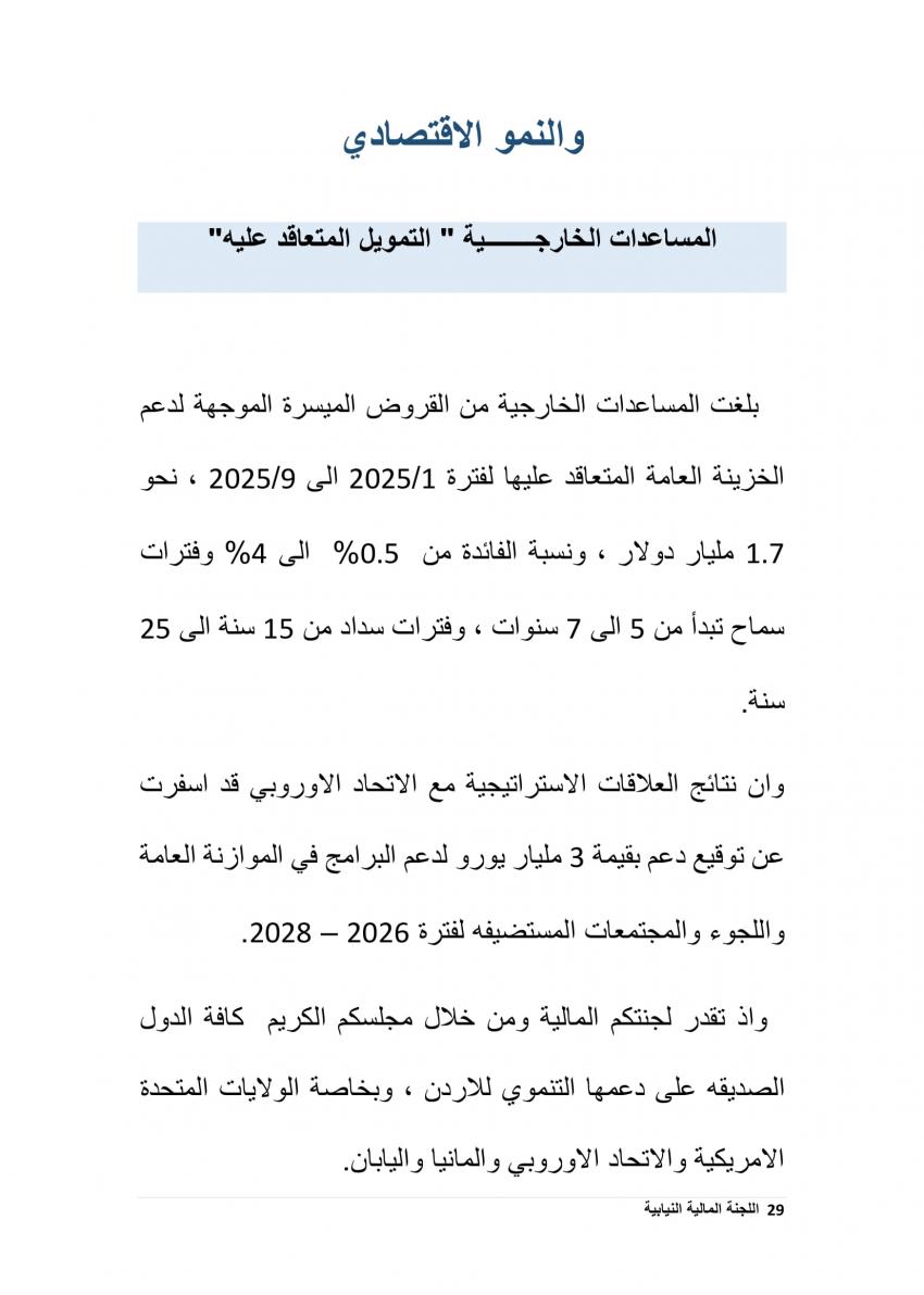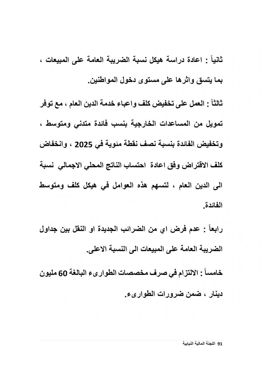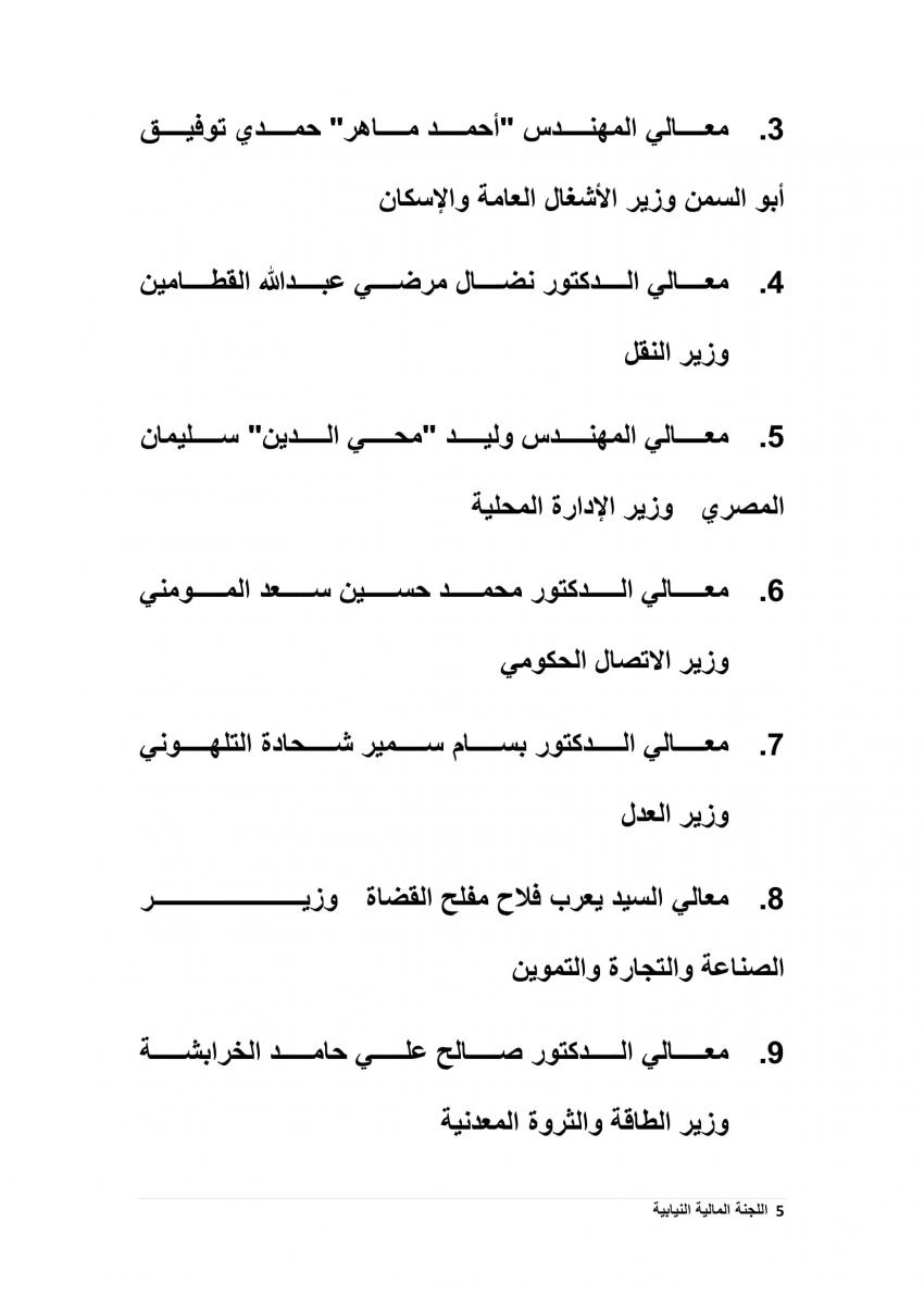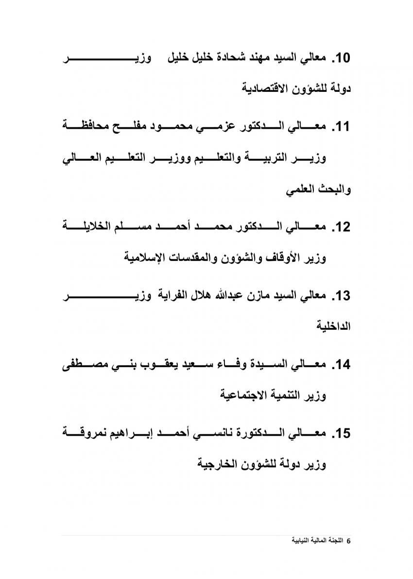 وتاليا نص قرار اللجنة بشأن مشروع قانون الموازنة: