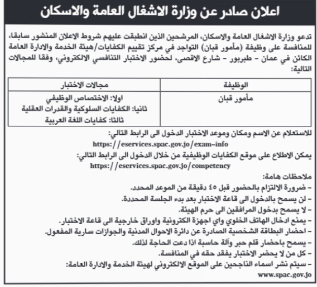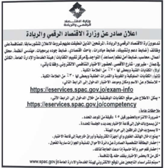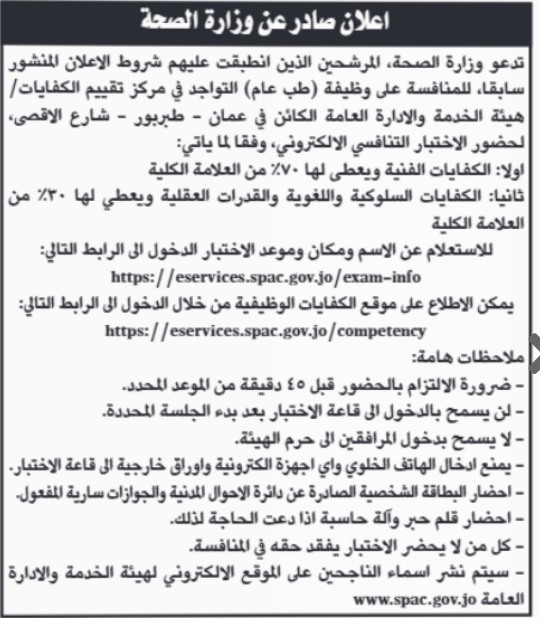 الوقائع الإخباري: دعت دوائر حكومية اليوم الخميس المرشحين الذين انطبقت عليهم شروط الاعلان المنشور سابقا لحضور الاختبار التنافسي.