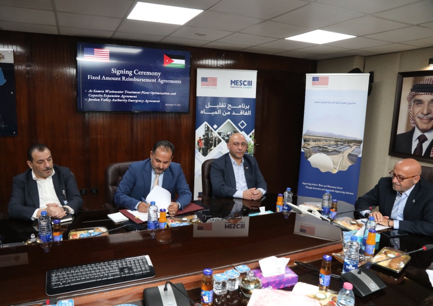 الوقائع الإخباري: رعى وزير المياه والري المهندس رائد أبو السعود توقيع اتفاقية مشروع تحسين وتوسعة محطة معالجة مياه الصرف الصحي في السمرا واتفاقية تمويل لمشروع تتنفيذ الاجراءات العاجلة لتعزيز مصادر المياه في وادي الاردن وذلك ضمن اطار الاستجابة الطارئة للتحديات المائية، مع سفارة الولايات المتحدة الامريكية اليوم الأربعاء 17/12/2025 لتقديم 46 مليون دولار لتوسعة المحطة وتعزيز مصادر المياه في وادي الأردن وتمويل استدامة القطاع الزراعي والتي وقعها امين عام سلطة المياه المهندس سفيان البطاينة وامين عام سلطة وادي الأردن المهندس هشام الحيصة بحضور عدد من المعنيين.