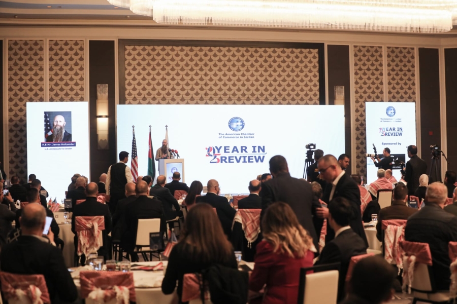 Amman, Jordan – December 18, 2025 – The American Chamber of Commerce in Jordan (AmCham-Jordan) hosted its 2025 Annual Year-in-Review Dinner at the St. Regis Amman, under the Patronage of H.E Prime Minister Dr. Jafar Hassan. H.E. Eng. Yarub Qudah, Minister of Industry, Trade & Supply, represented the Prime Minister.
