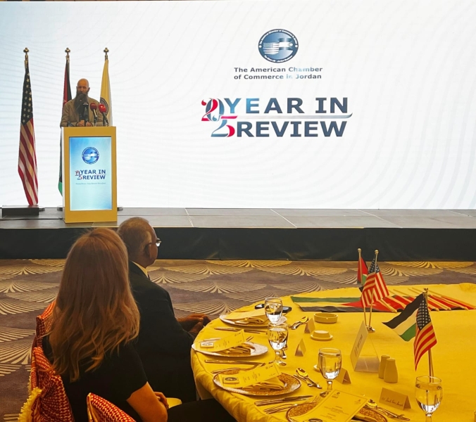 AmCham-Jordan CEO Ms. Raghad Al Khojah showcased the Chamber’s key achievements over the past year, including new initiatives and programs designed to promote trade and investment opportunities, bridge gaps in the business environment, foster innovation, and create high-impact networking channels that support tangible economic expansion.