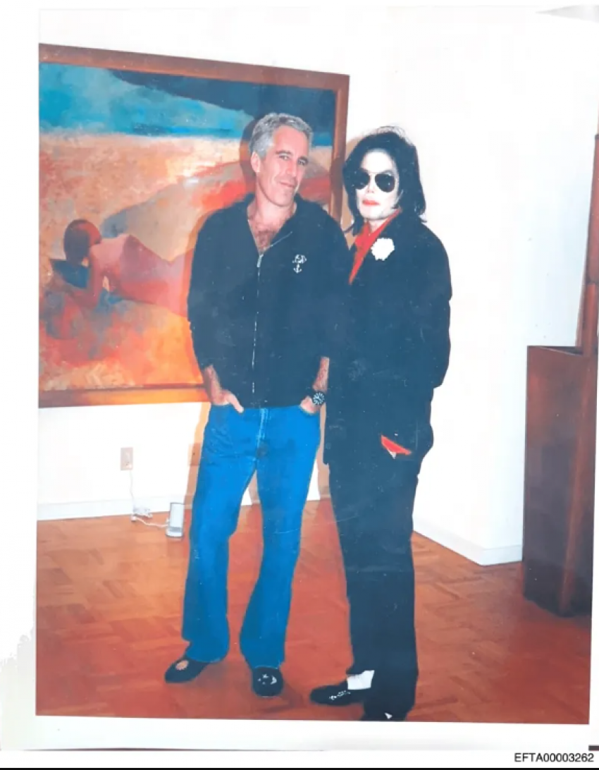 ومن بين الصور الأخرى ضمن الكمّ الهائل من الوثائق التي نشرتها وزارة العدل، صورة تجمع جيفري إبستين مع أسطورة البوب والمتهم بالتحرش الجنسي مايكل جاكسون.
