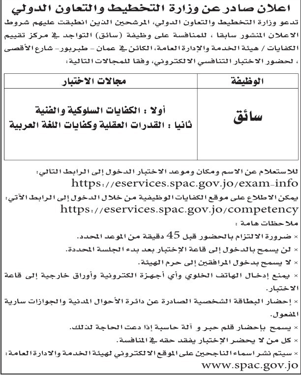 الوقائع الإخباري :دعت دوائر حكومية، اليوم الثلاثاء المرشحين الذين انطبقت عليهم شروط الاعلان المنشور سابقا للامتحان التنافسي.