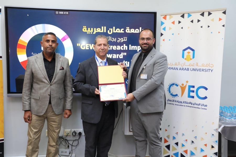 ومن الجدير بالذكر أن جامعة عمان العربية حصلت هذا العام على جائزة الأثر المجتمعي في الوصول (GEW Outreach Impact Award 2025)، لتكون الجامعة الأردنية الخاصة الوحيدة التي حصدت هذه الجائزة، وذلك تقديراً لجهودها المتميزة في الوصول إلى المجتمع المحلي وتنفيذ مبادرات ريادية ذات أثر ملموس ضمن فعاليات أسبوع الريادة العالمي، بما يعكس دورها الريادي في خدمة المجتمع وتعزيز ثقافة الريادة والابتكار.