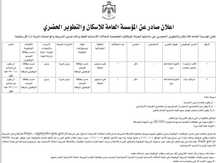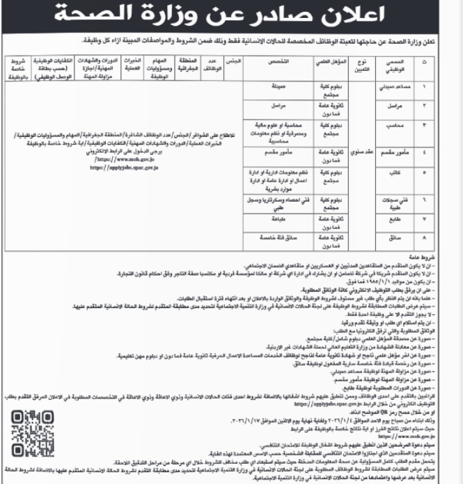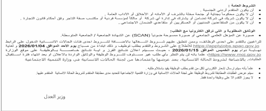 الوقائع الإخباري : اعلنت دوائر حكومية، اليوم الاحد عن حاجتها لتعبئة وظائف شاغرة.