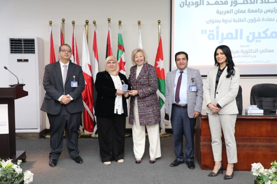 الوقائع الإخباري: ضمن توجهات جامعة عمّان العربية الهادفة إلى دعم قضايا تمكين المرأة وتعزيز دورها في المجتمع وتحت رعاية الأستاذ الدكتور محمد الوديان رئيس الجامعة، نظّمت عمادة شؤون الطلبة ندوة بعنوان: "تمكين المرأة"، قدّمتها معالي الدكتورة هيفاء النجار وزيرة الثقافة الأسبق، بحضور الدكتور محمد بن طريف عميد شؤون الطلبة، وعدد من أعضاء الهيئتين التدريسية والإدارية وطلبة الجامعة.