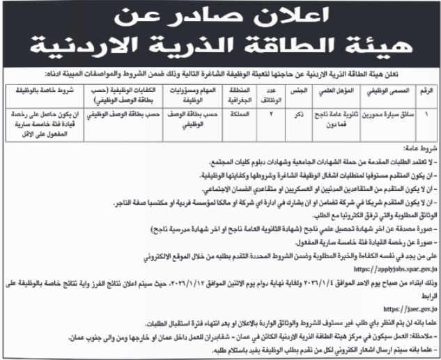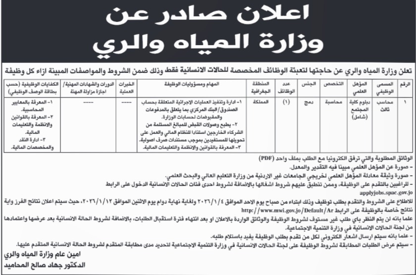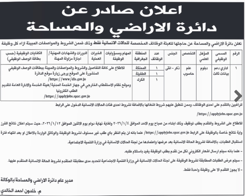 الوقائع الإخباري : اعلنت دوائر حكومية، اليوم الاربعاءعن حاجتها لتعبئة وظائف شاغرة.