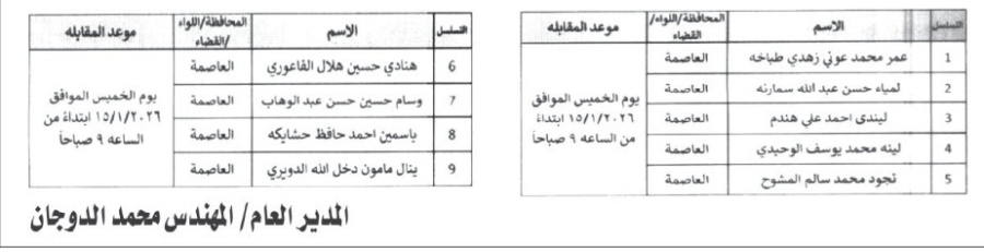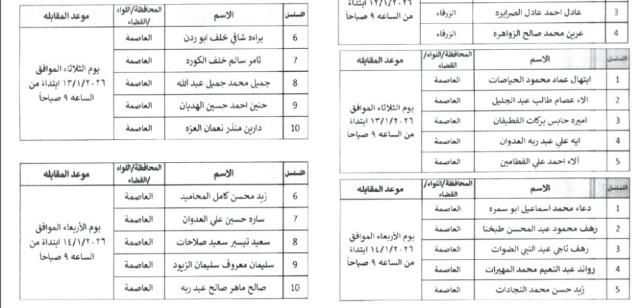 الوقائع الإخباري :دعت دوائر حكومية اليوم الاثنين، التالية أسماؤهم لاجراء المقابلة الشخصية.