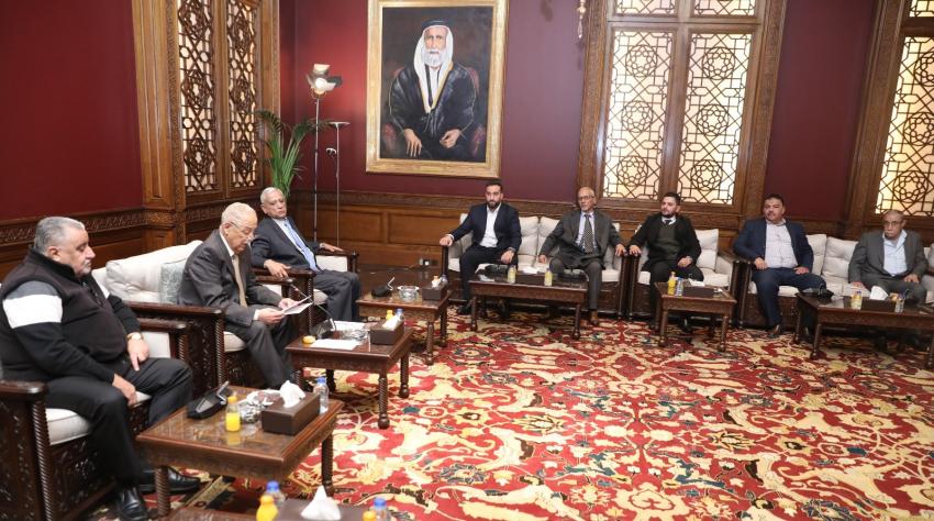 الوقائع الإخباري: عقد رئيس الديوان الملكي الهاشمي يوسف حسن العيسوي، اليوم الخميس، لقاءين منفصلين في الديوان الملكي الهاشمي، جمعاه مع وفدين، ضم الأول وفدًا من نادي القادسية، فيما ضم الثاني وفدًا من فريق "كلنا خلف القائد".