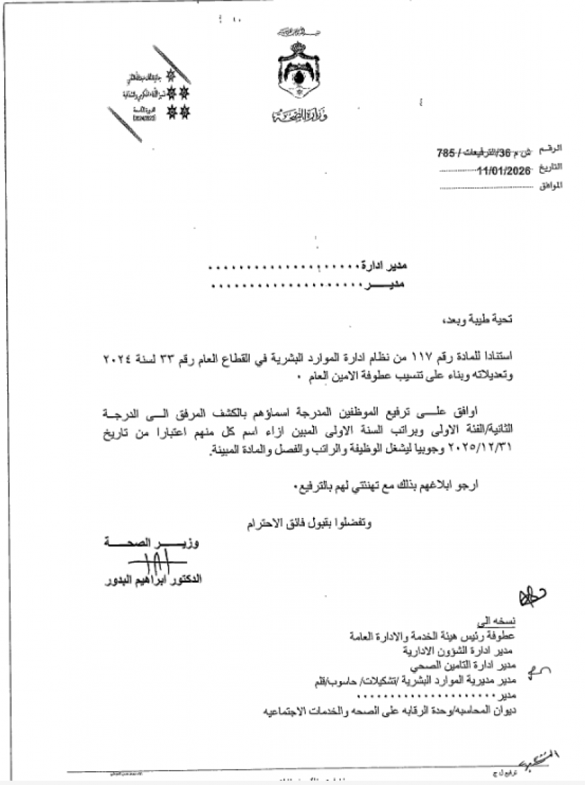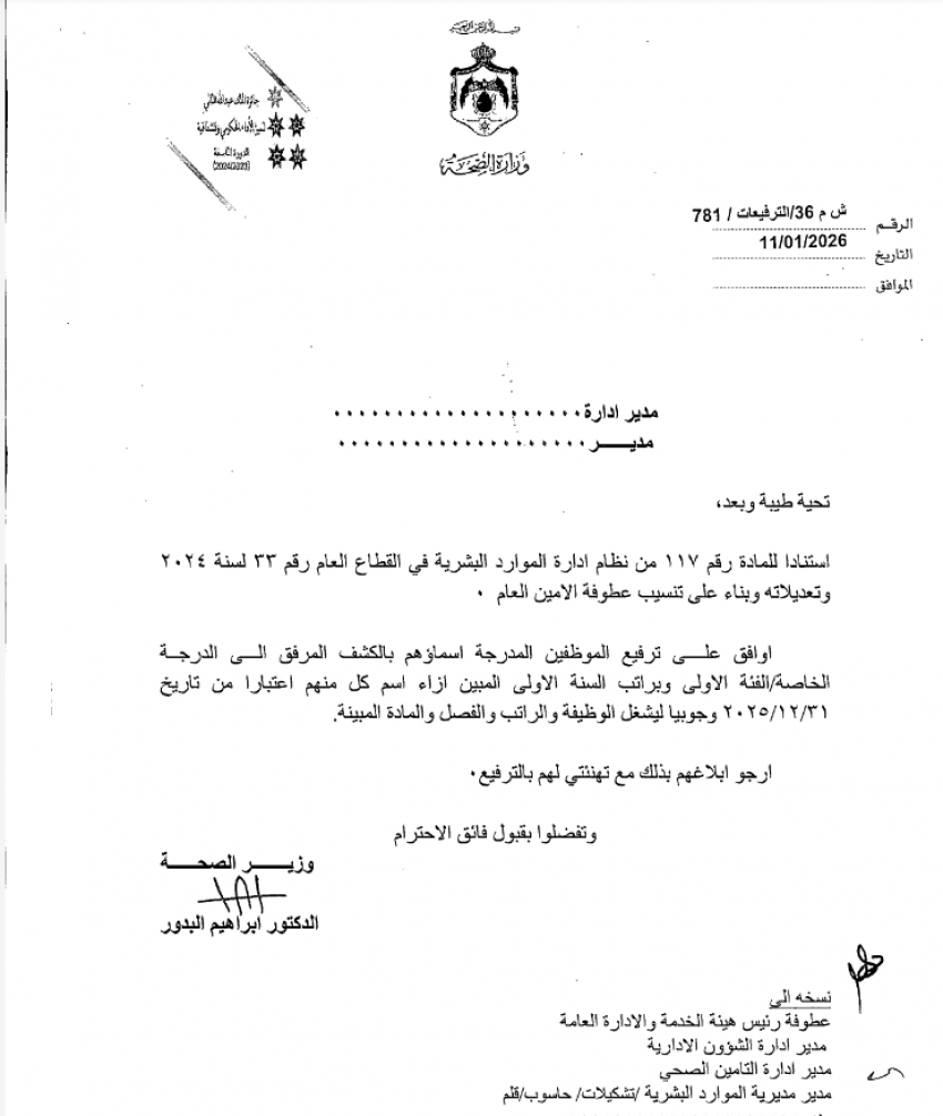 بالأسماء ... ترفيعات في وزارة الصحة
