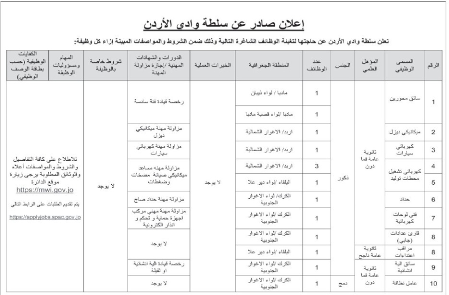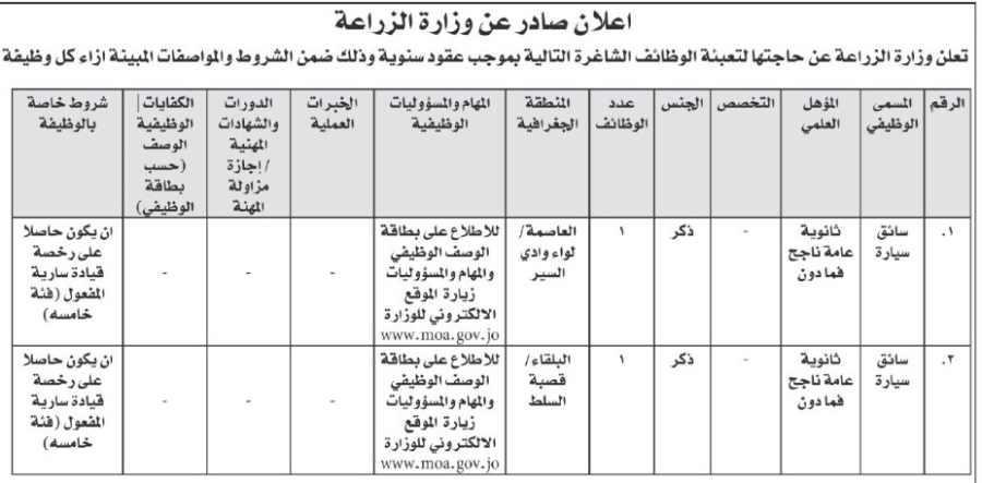 الوقائع الإخباري : اعلنت دوائر حكومية اليوم الخميس عن حاجتها لتعبئة وظائف شاغرة.