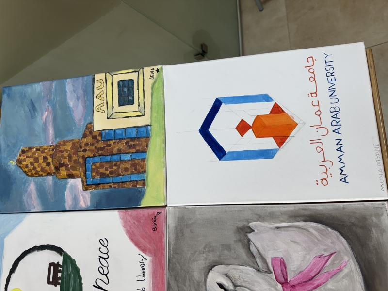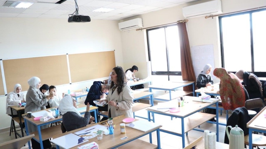 وقدّمت الدكتورة ملكاوي خلال الورشة إرشادات وتوجيهات فنية متخصصة أسهمت في مساعدة الطلبة على تنظيم أفكارهم وترجمتها إلى أعمال فنية تعبّر عن مشاعرهم وذواتهم، مستندةً إلى خبرتها واهتمامها بالفن، وبأسلوب تفاعلي أتاح بيئة تعليمية مريحة ومحفّزة على الإبداع، وهدفت الورشة إلى توفير مساحة إبداعية للطلبة تمكّنهم من التعبير عن أفكارهم ومكنوناتهم من خلال الرسم، وتعزيز التواصل والتفاعل فيما بينهم خارج الإطار الأكاديمي التقليدي، كما شهدت الورشة مشاركة فاعلة في أنشطة فنية متنوعة تعكس اهتمام الطلبة بالفن بوصفه وسيلة للتعبير الذاتي وبناء الوعي الإبداعي، حيث أظهر الطلبة المشاركون مستوى لافتًا من الحماس والتميّز، وأنجزوا لوحات فنية تنوّعت في أفكارها وأساليبها الفنية، في أجواء اتسمت بروح التعاون والتشجيع المتبادل، ما عزّز قيم المشاركة والانتماء بين طلبة الكليات المختلفة.
