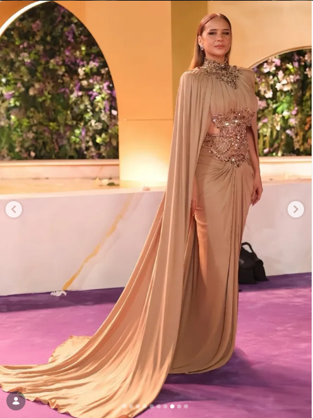 أكد ناقد الموضة:”الشعر و المكياج حلوين و مناسبين و الحذاء ما حبيت، و بعطي الاطلالة 6.25/10.”