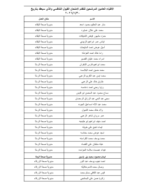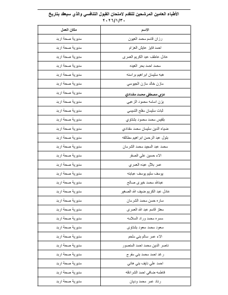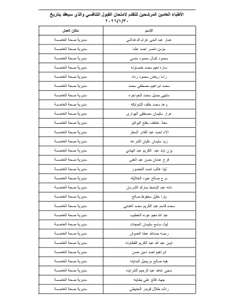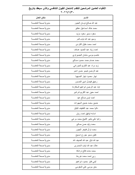 بالأسماء .. وزارة الصحة تدعو مئات الأطباء لتقديم امتحان القبول في برنامج الإقامة