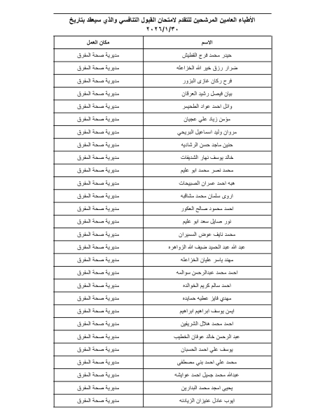 الوقائع الإخباري – دعت وزارة الصحة الأطباء المدرجين أسماؤهم إلى تقديم امتحان القبول لبرنامج الإقامة في المواعيد والأماكن المحددة.