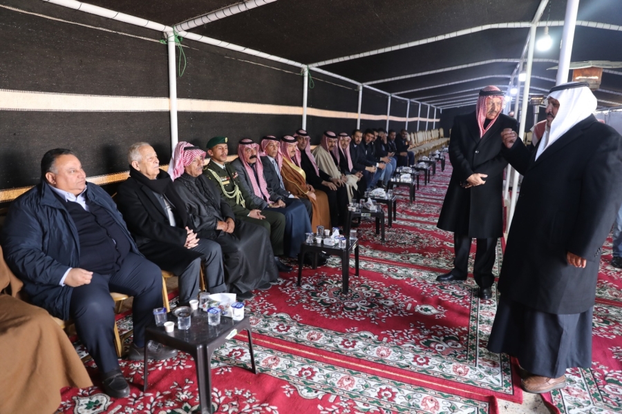 الوقائع الإخباري - مندوبا عن جلالة الملك عبدالله الثاني وسمو الأمير الحسين بن عبدالله الثاني، ولي العهد، قدّم رئيس الديوان الملكي الهاشمي يوسف حسن العيسوي، اليوم السبت، واجب العزاء إلى عشائر العيسى والحراحشة والعتوم والمرازيق والشمالي، ناقلا إليهم تعازي ومواساة جلالة الملك وسمو ولي العهد.
