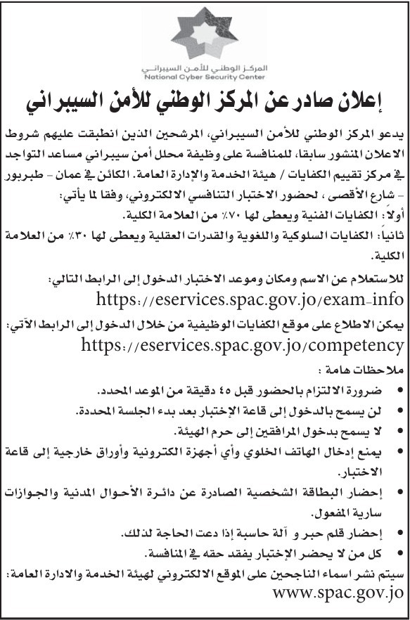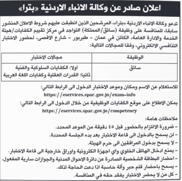 الوقائع الإخباري - وجهت دوائر حكومية اليوم الأحد دعوة للمرشحين الذين استوفوا شروط الإعلان المنشور سابقًا للامتحان التنافسي