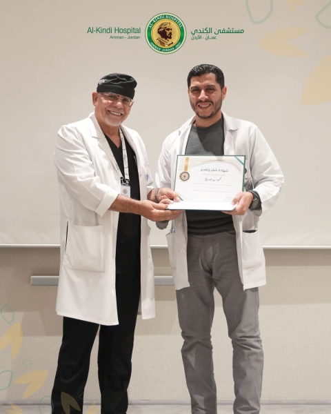 وأشاد الدكتور خريس خلال كلمته في هذا الاحتفال بمرور ست سنوات على بدء مسيرة النجاح بمستشفى الكندي بكوادر المستشفى بفئاتها المختلفة وتقديرا وعرفانا لها التي عملت ولا زالت تعمل على رفعة المستشفى والحرص على تقديم خدمات مثلى للمرضى والارتقاء به للوصول الى العالمية حيث يستقبل مرضاه من ( 75 ) دولة ، والتي ظهرت فيها معادن الرجال وأمانتهم وانتمائهم وعطائهم طوال مدة عملهم .