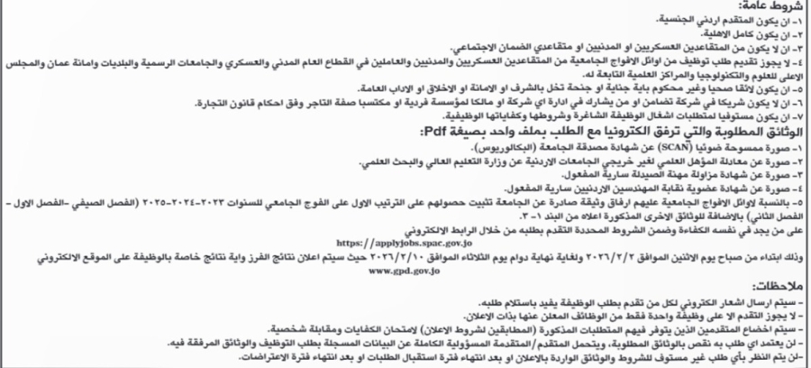 الوقائع الإخباري-أعلنت دائرة المشتريات الحكومية، اليوم الأحد، عن حاجتها لتعبئة عدد من الوظائف الشاغرة