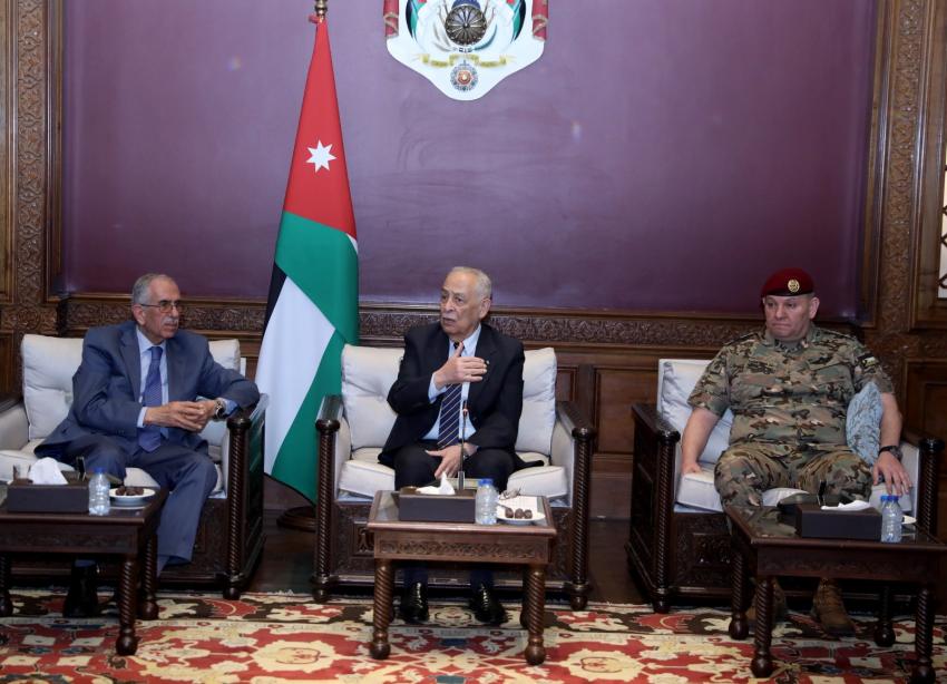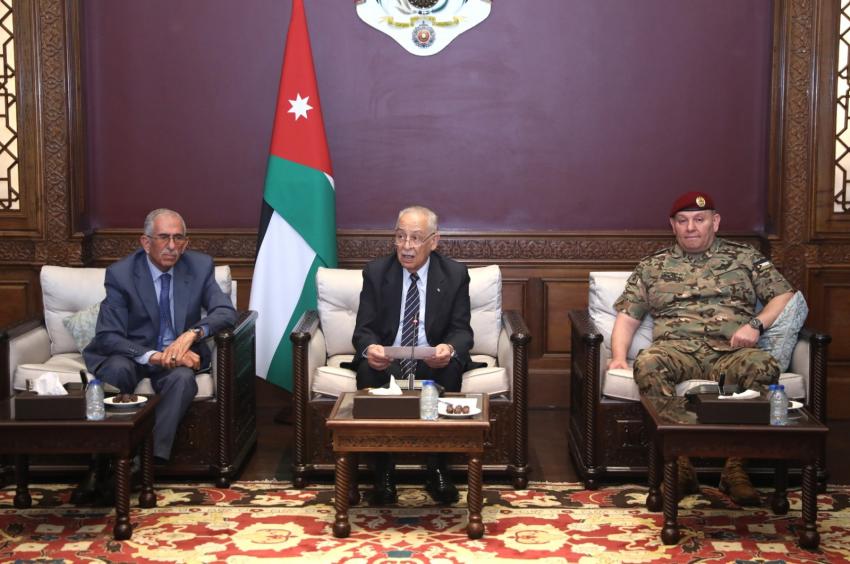 الوقائع الإخباري - التقى رئيس الديوان الملكي الهاشمي يوسف حسن العيسوي، اليوم الأحد، وفدًا من أعضاء اللجنة الوطنية للعسكريين السابقين، في الديوان الملكي الهاشمي، بحضور العميد الركن رعد العمايرة مدير المكتب العسكري الخاص لجلالة الملك.