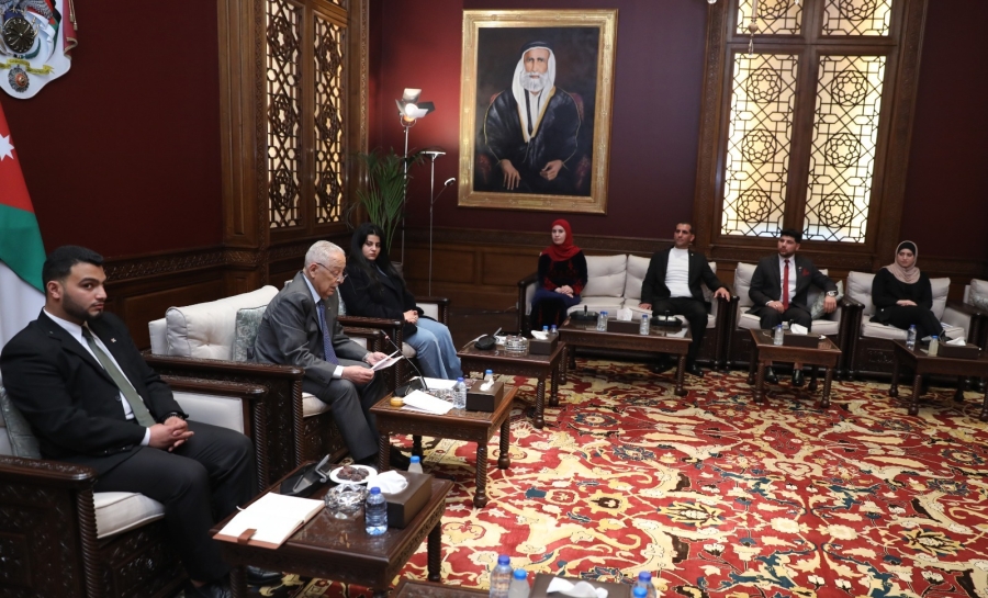 الوقائع الإخباري - التقى رئيس الديوان الملكي الهاشمي يوسف حسن العيسوي، اليوم الاثنين، في الديوان الملكي الهاشمي، وفدين؛ الأول ضمّ سيدات من البادية الجنوبية يمثلن جمعيات خيرية، والثاني وفدًا من شباب مبادرة "أفق التغيير".