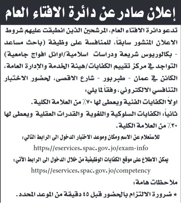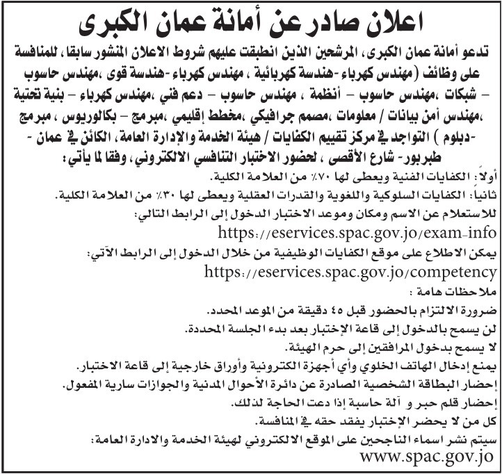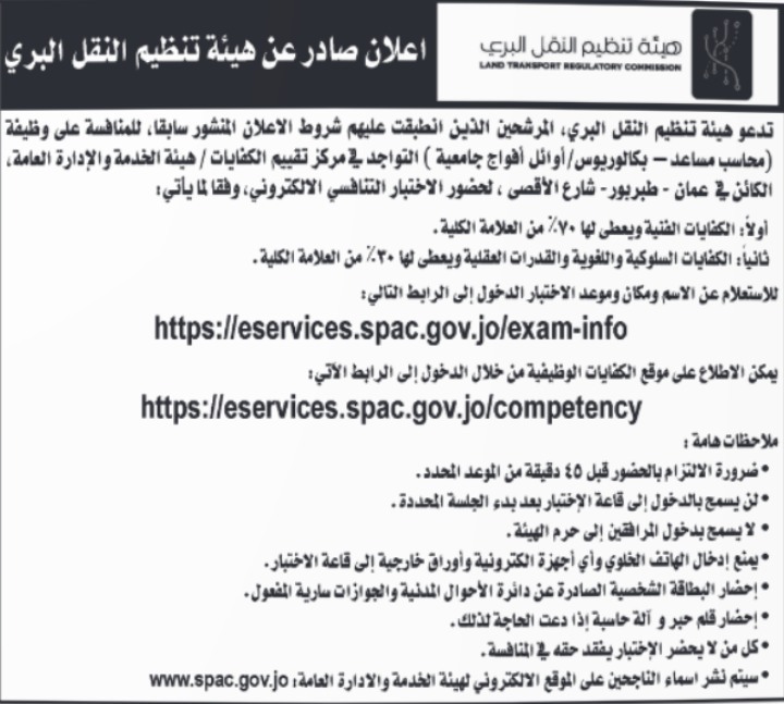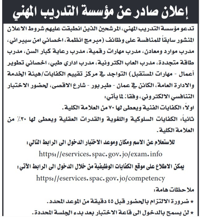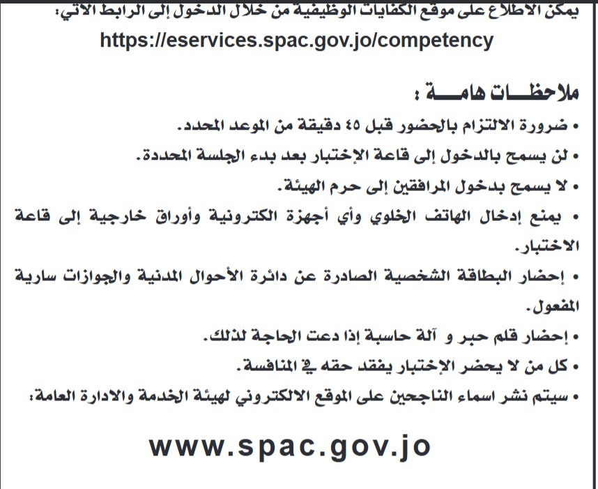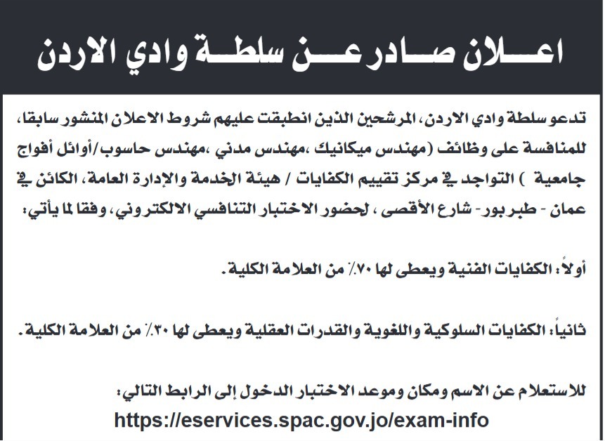الوقائع الإخباري- دعت دوائر حكومية، اليوم الاربعاء المرشحين الذين انطبقت عليهم شروط الاعلان المنشور سابقا للامتحان التنافسي.